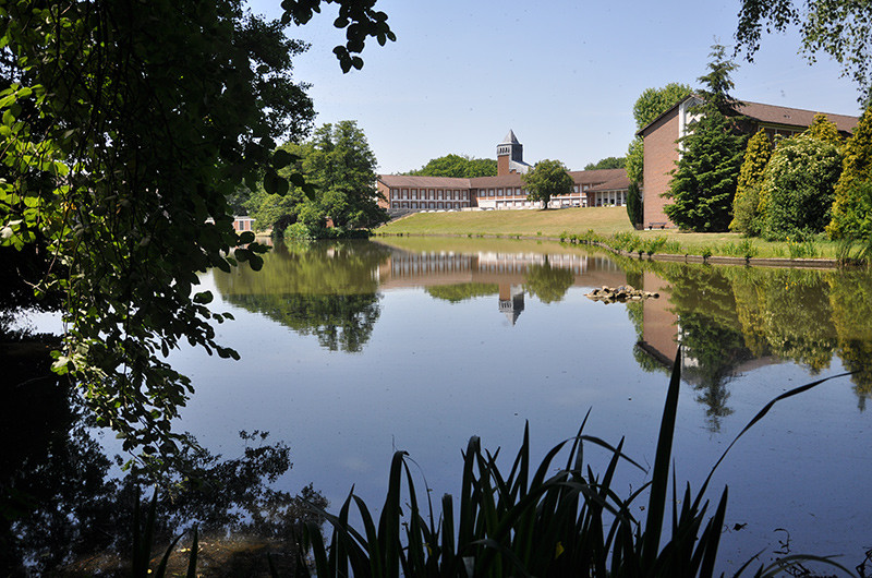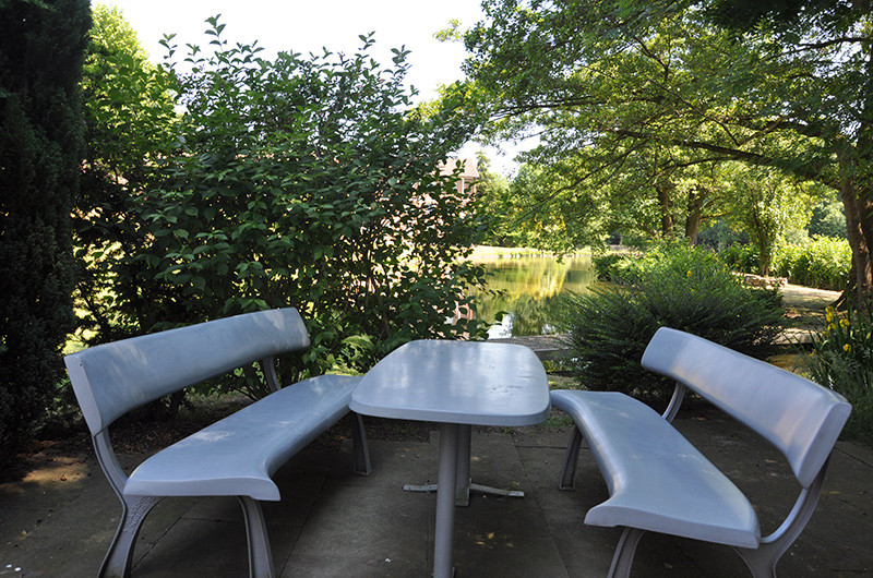 Unser weitläufiges Gelände – umgeben von Wiesen und Wasserläufen – lädt zu Ruhe und Entspannung ein. Hinter dem Haus befindet sich eine Parkanlage mit einem großen Fischteich, die den Gästen des Hauses zugänglich ist. Große Rasenflächen bieten ideale Spielmöglichkeiten für Groß und Klein. Außerdem gibt es auf dem Gelände einen Kinderspielplatz.