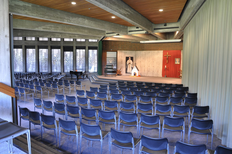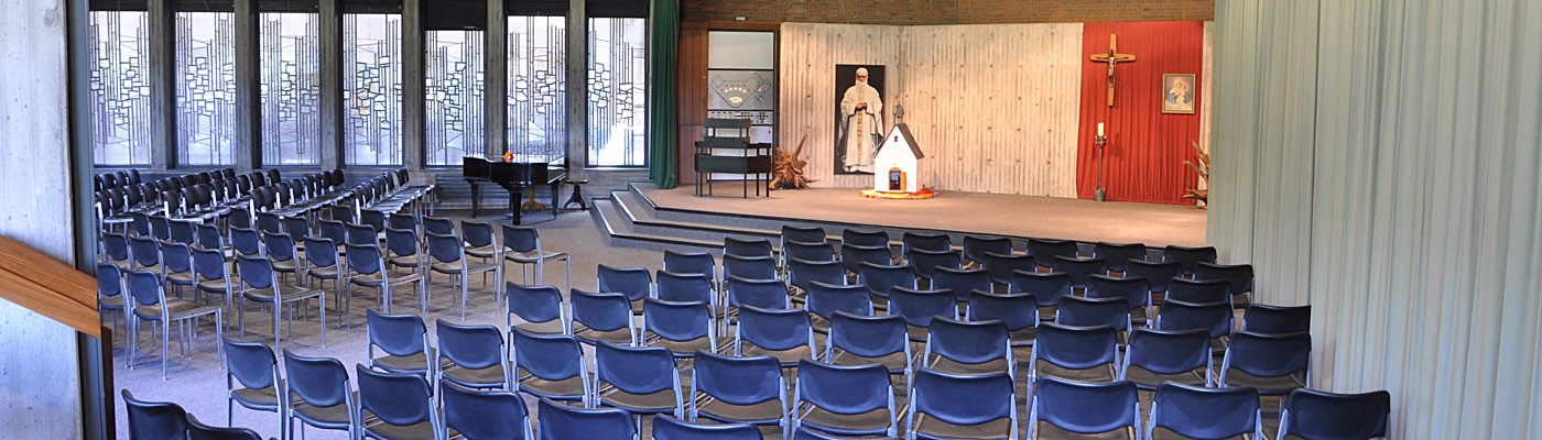 - Die Aula mit Bühnenvorrichtung für Konzerte und Theateraufführungen bietet Platz für 300 Personen